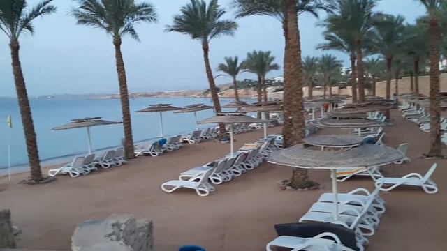 В пять часов утра на пляже еще никого почти нет, люди еще спят в номерах ,рыбки в рифе и только одинокий журавлик иногда прогуливается вдоль берега.