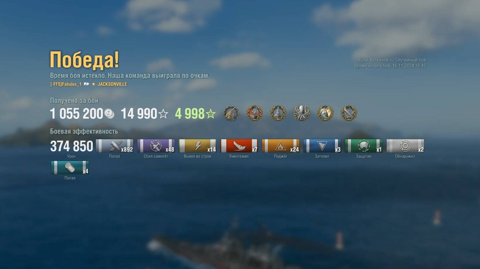 Супер крейсер Jacksonville: +374к урона 7 фрагов на карте Край вулканов - World of Warships