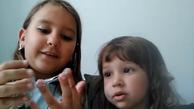 Jag och min syster kliper i min stresbol.