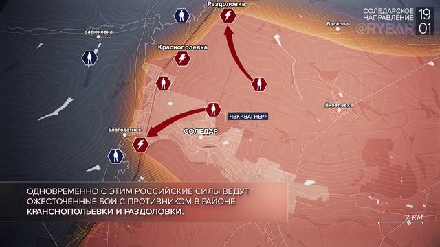 ▪️В Белгородской области противник нанес удар по селу Долгое и хутору Балки: повреждены жилые дома, пострадавших нет. Прилеты также зафиксированы в районе хутора Церковный, где один из снарядов попал по корпусу птицефабрики. ▪️Обстановка на Купянском участке существенных изменений не претерпела. Стороны обмениваются артиллерийскими ударами и ведут взаимную разведку. Российские разведывательно-диверсионные группы вступили в бой с противником в окрестностях Двуречной и на подступах к Подолам. ▪️После зачистки подземных коммуникаций и окрестностей Соледара штурмовые отряды ЧВК «Вагнер» развивают наступление в направлении Благодатного. Одновременно с этим российские силы ведут ожесточенные бои с противником в районе Кранснопольевки и Раздоловки. ▪️Продолжаются боестолкновения в Бахмуте. Бойцы ЧВК «Вагнер» теснят украинские формирования в районе Мясокомбината. Командование ВСУ перебрасывает в город дополнительные силы, стремясь остановить продвижение российских войск. ▪️К юго-западу от Бахмута «вагнеровцы» полностью освободили Клещеевку, выдавив противника за границы села. Украинские подразделения контратакуют, пытаясь не допустить обвала южного фланга обороны Бахмута. ▪️Противник из ствольной и реактивной артиллерии вновь беспорядочно обстрелял Донецкую агломерацию. В столице ДНР под удар попали жилые постройки в Кировском районе. Жертв и пострадавших удалось избежать. ▪️На Ореховском участке российские войска осуществили успешную разведку боем, вынудив противника отступить с занимаемых позиций. Российская артиллерия интенсивными ударами рассеивает украинские формирования и не позволяет им перейти в контрнаступление. #видео #хроника #фронт #дайджест #Донецк #карта #Луганск #Россия #Украина