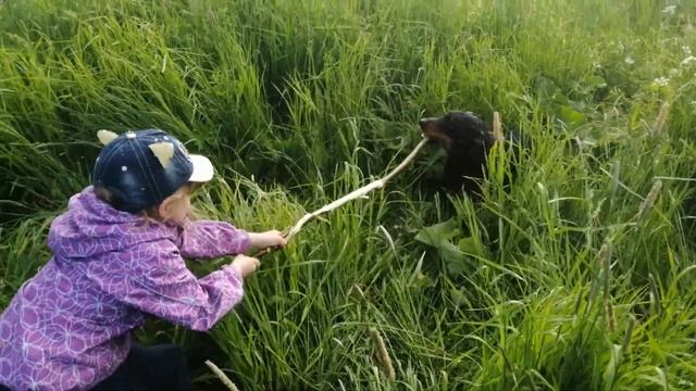 Кто кого?) Доча против Немецкого ягдтерьера.