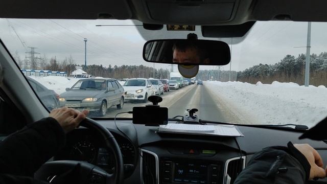 При заезде в Белый Яр большая пробка