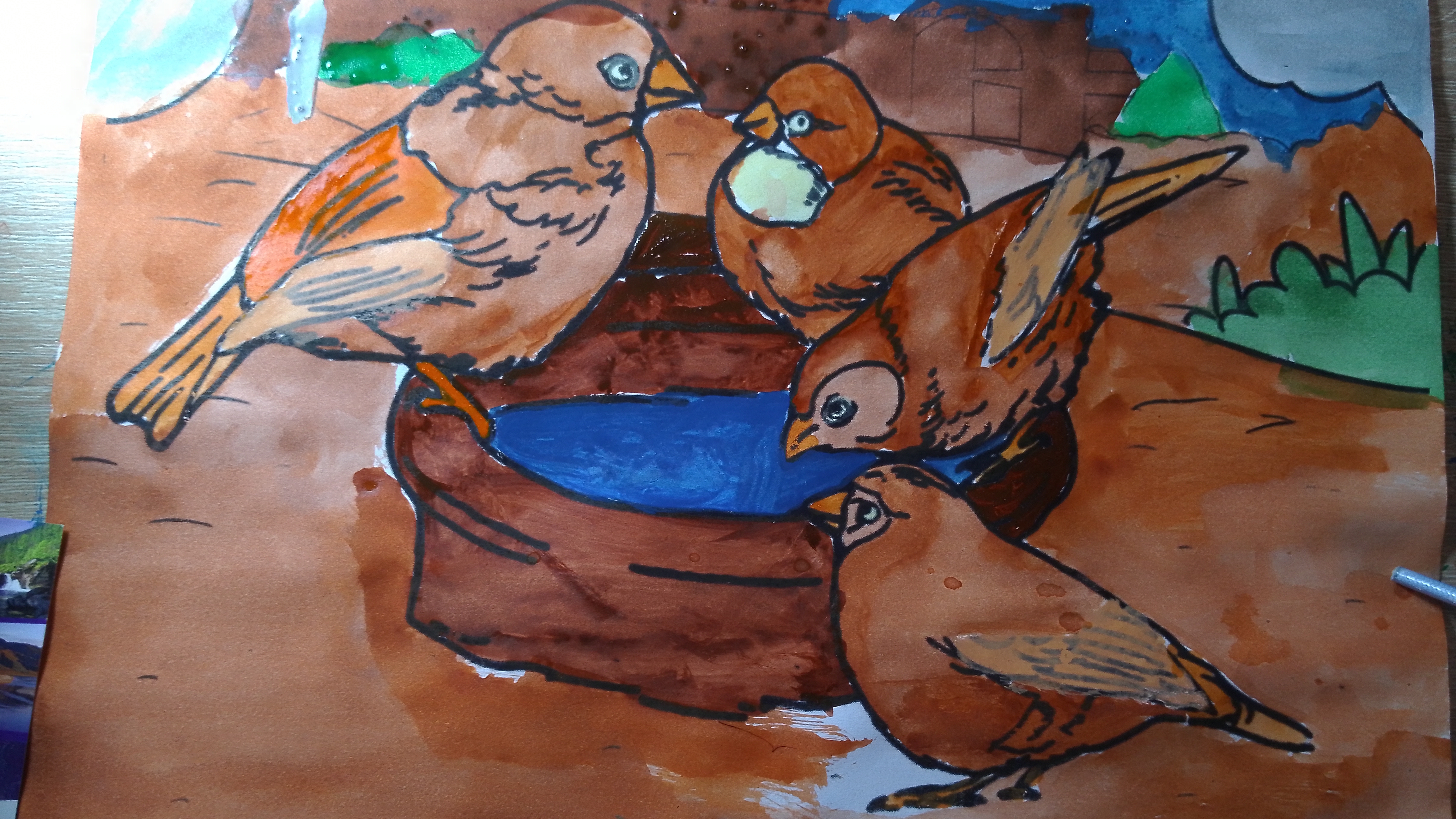 Раскрашивать воробьëв в таймлапс с музыкой.