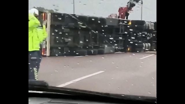 Шторм опрокинул несколько грузовиков на трассе в турецком Коджаэли