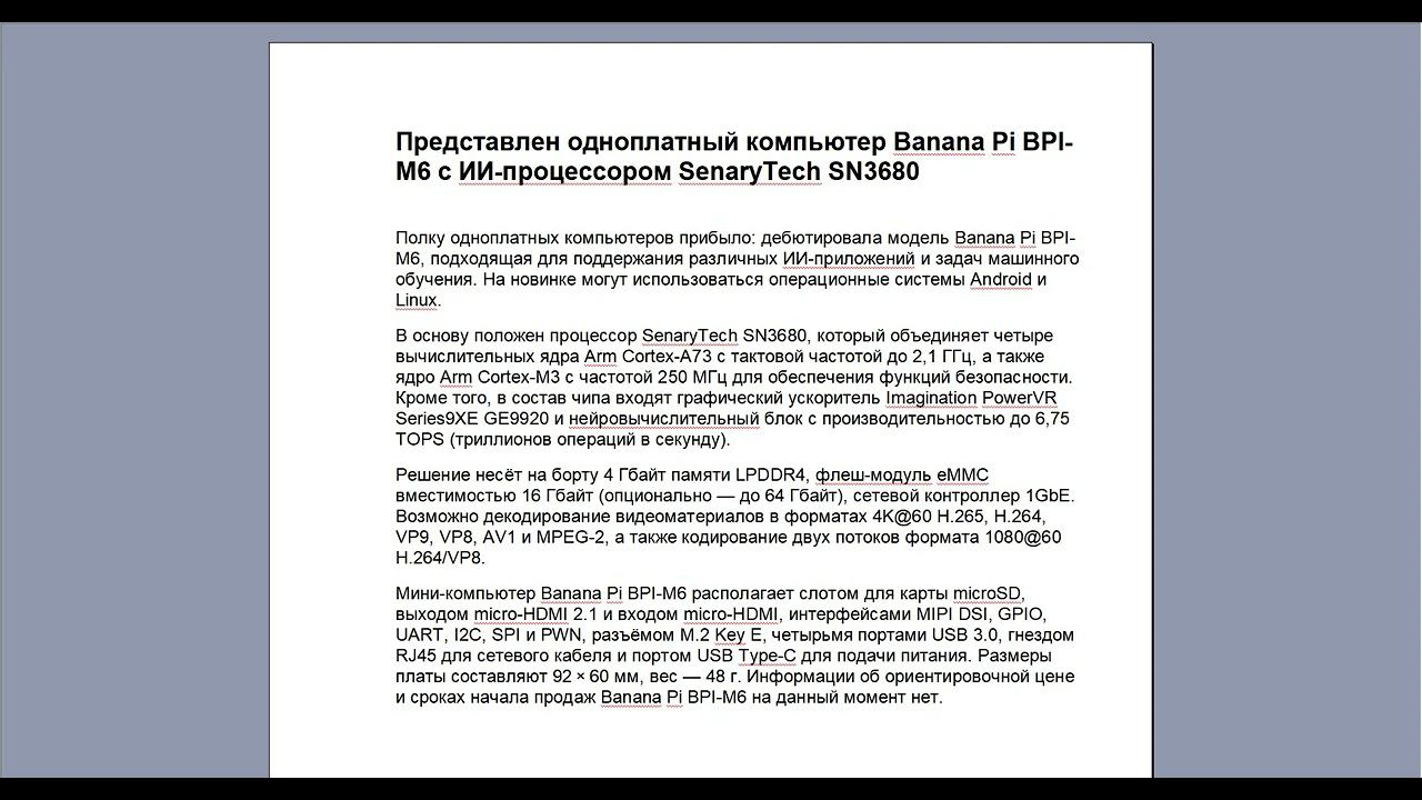 Представлен одноплатный компьютер Banana Pi BPI-M6 с ИИ-процессором SenaryTech SN3680