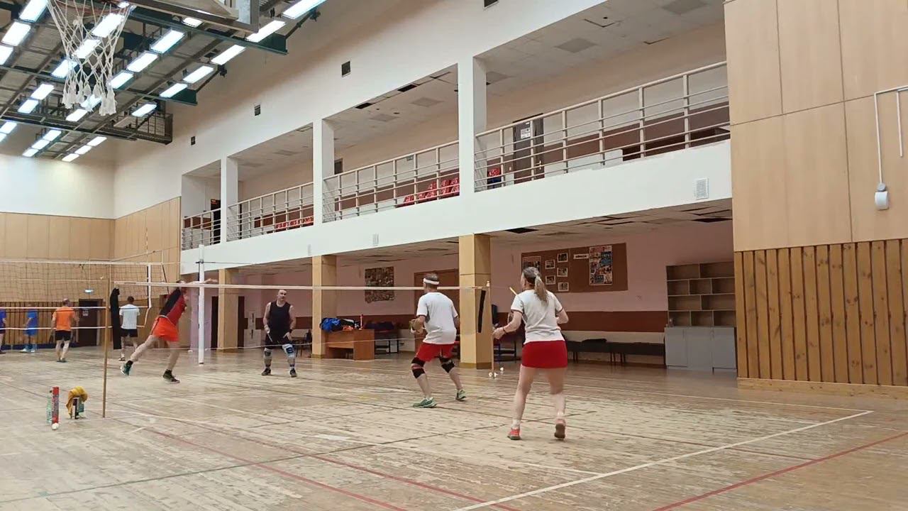 Тренировочная игра в бадминтон через сетку. Играют любители, новички и опытные бадминтонисты. Игра в Лестехе (МГУЛ ранее, сейчас называется филиалом Бауманки). Хочешь тоже играть? Приходи - https://badminton77.ru/map/4/ #badminton #badmintonlovers #badmintonrussia #lesteh #ЛесТех #бадминтон