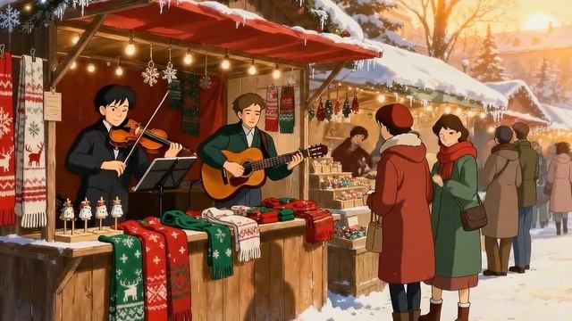 Нежное зимнее Рождество с теплыми огнями и спокойной атмосферой Видео в стиле Ghibli