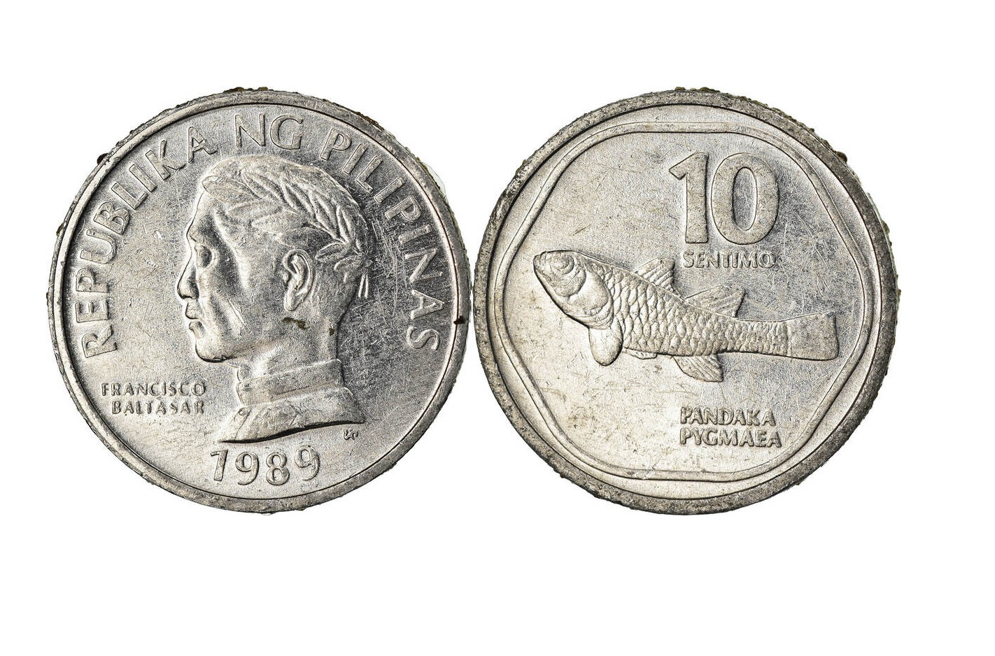 монета с рыбой, Филиппины 10 сентимо 1989, Пандака карликовая самая мелкая рыба употребляемая в пищу