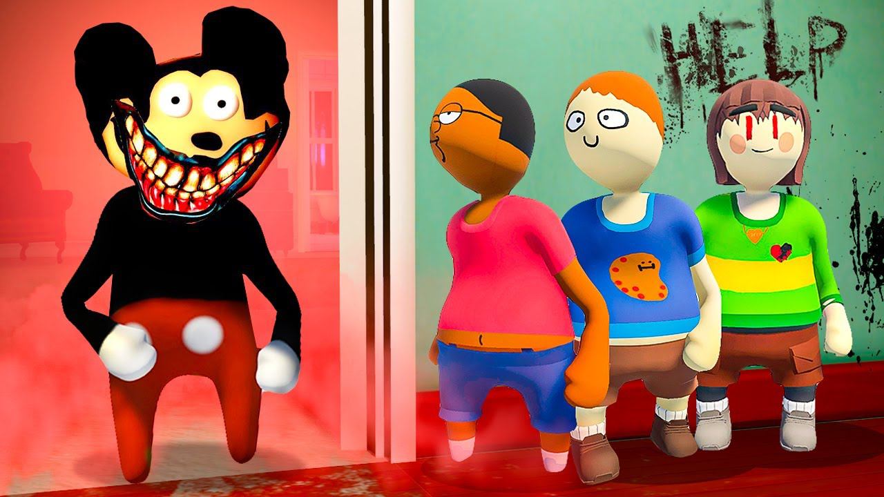 СТРАШНЫЙ МИККИ МАУС ИЩЕТ НАС! УКРЫЛИСЬ В МЕГА НЫЧКЕ! УГАРНЫЕ ПЛАСТИЛИНОВЫЕ ПРЯТКИ В HUMAN FALL FLAT