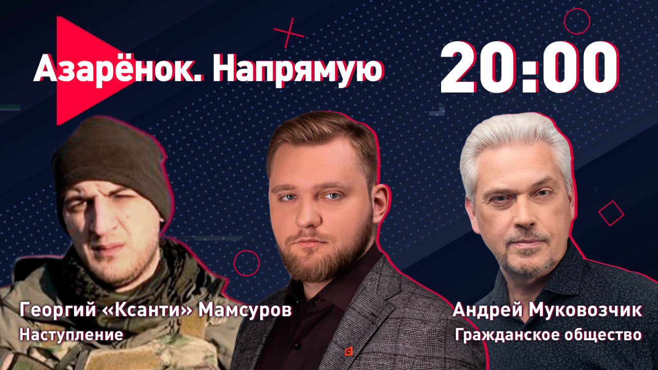 15-02-2023_Проект «Азарёнок. Напрямую». О важном в прямом эфире. Вместе с экспертами обсудили новости с фронта спецоперации и гражданское общество Беларуси. В гостях публицист Андрей Муковозчик и специальный корреспондент батальонов «Алания» и «Осетия» Георгий «Ксанти» Мамсуров Григорий Азарёнок, телеканал СТВ (Беларусь)