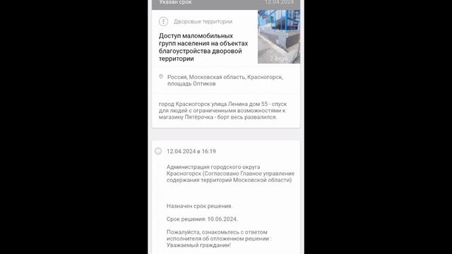 Всем добрый день. Ответ с сайта Добродел - указан срок, к сожалению он достаточно большой - как могли принимать данную работу по ступеням, если спуск/подъем для людей с ограниченными возможностями в ненадлежащем опасном состоянии. Вывод - обращайтесь и вы будете услышаны и работы будут проведены, к сожалению опять только по моим обращениям. А ведь сотрудники администрации города Красногорска получают зарплату за свою работу, а я делаю это абсолютно бесплатно. Всем чистого и безопасного города. #2024 #россия #красногорск #город #дом
