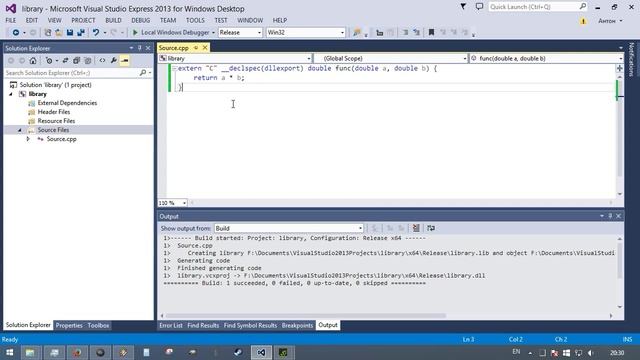 English. Creating a dynamic link library and call the "native-C" function of this library from LuaJIT 2 (from LOVE2D framework: http://love2d.org). Русский. Создание динамической библиотеки и вызов "нативной-C" функции этой библиотеки из LuaJIT 2 (из LOVE2D framework: http://love2d.org) Source files: https://drive.google.com/open?id=0BxsLw2s2AfEiSDF0SlBRWXpIb0U