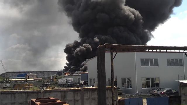 Пожар на ул. Тополиной, 24. Горят складские помещения.