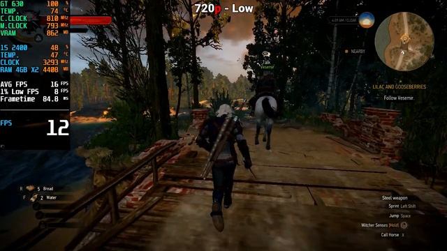 Witcher 3 Wild Hunt | Nvidia Geforce GT 630 + I5 2400 | 720p, 768p, Low