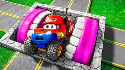 Молния Маккуин трансформируется в портальной яме! Гигантские ямы с челюстями против больших и малень