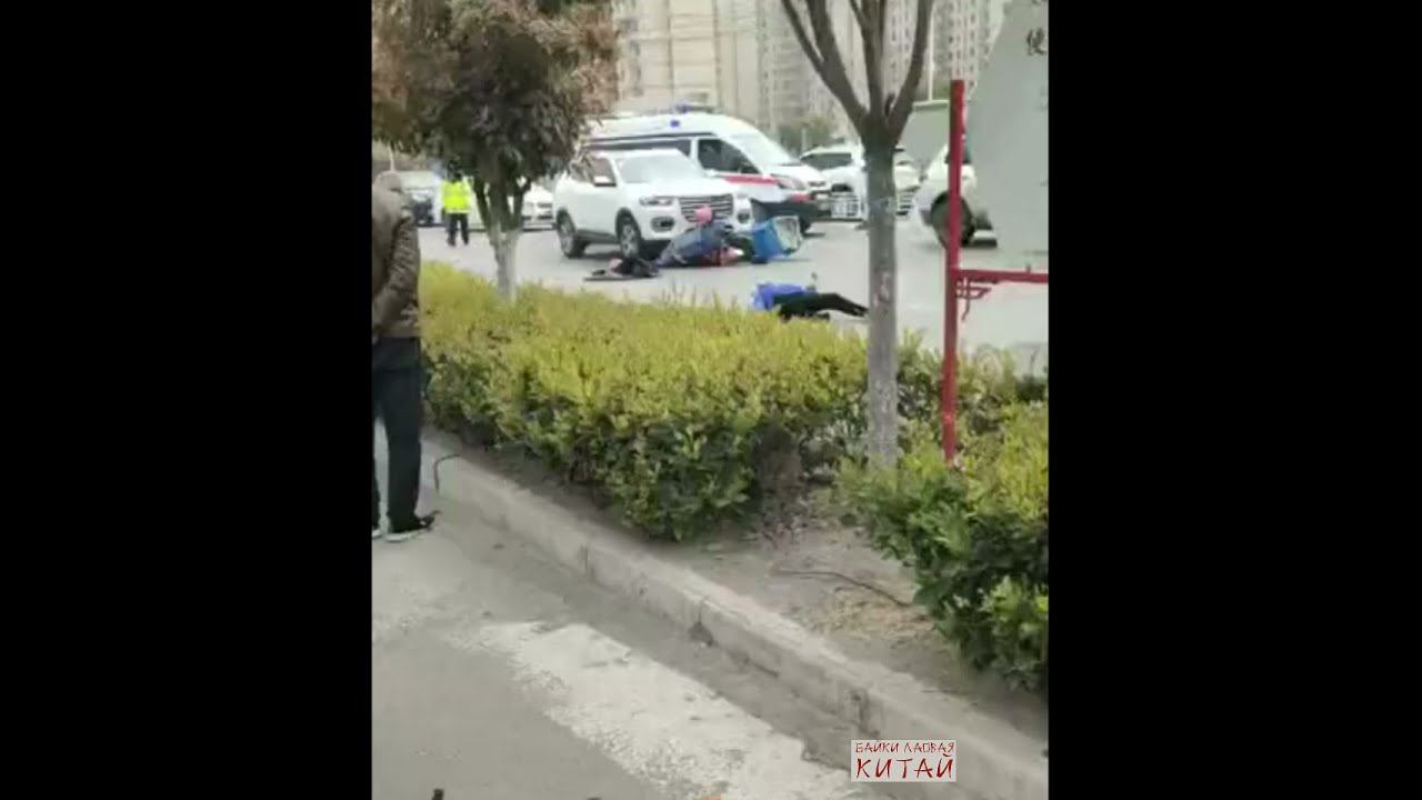 Курьер на драндулете, сбитый при езде в неположенном месте, дожидался помощи от вызванной скорой помощи. Но что-то пошло не так... Скорая помощь по-китайски - это... смотрите, короче! Бочжоу 亳州, провинция Аньхой.
