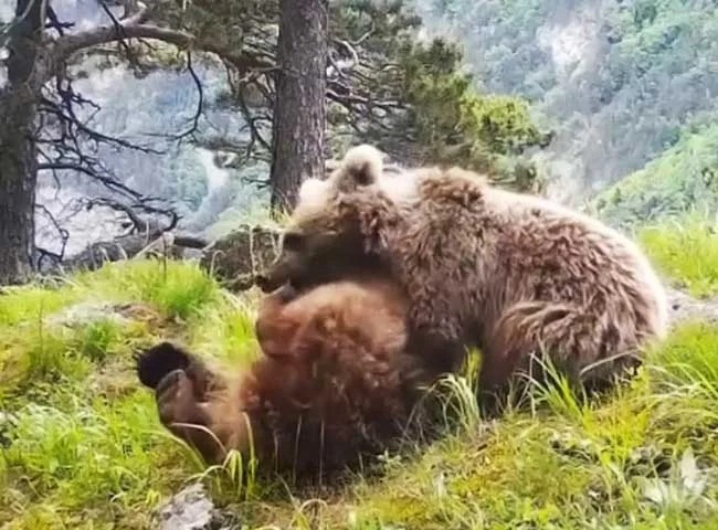 Медвежата устроили веселый поединок на территории заповедника «Алания»