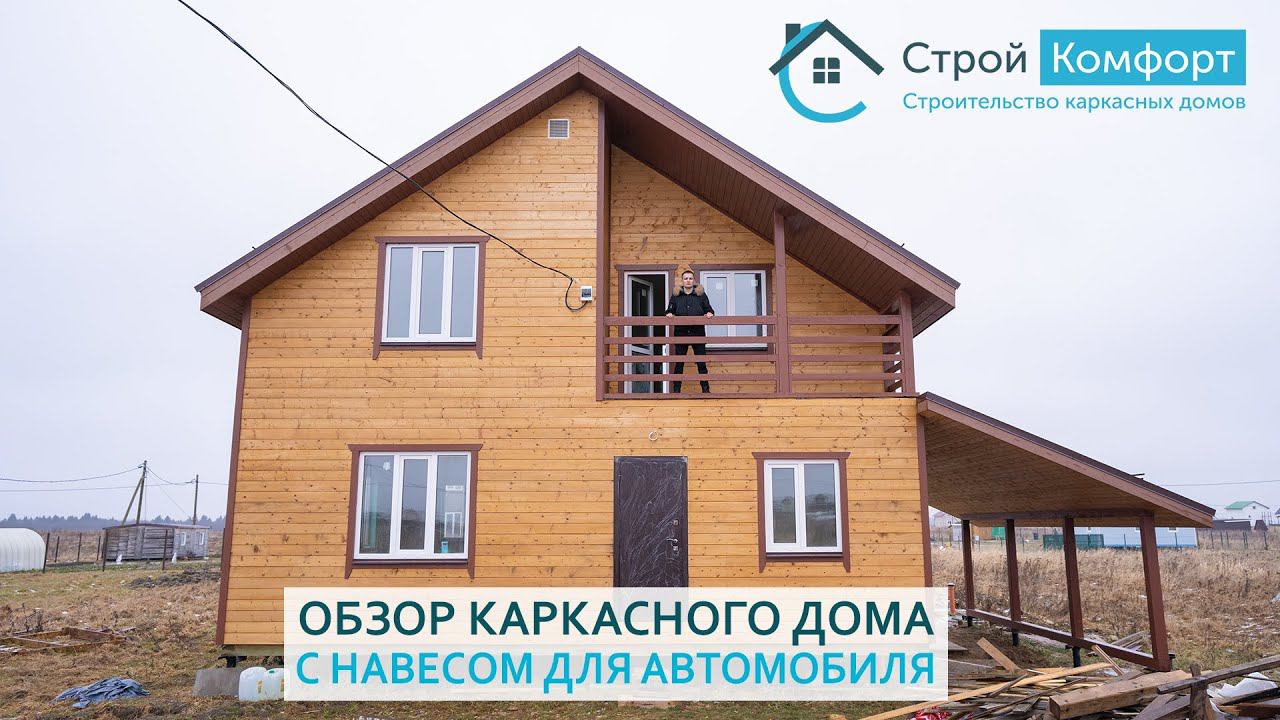 Обзор каркасного дома размером 7x9 с навесом.
