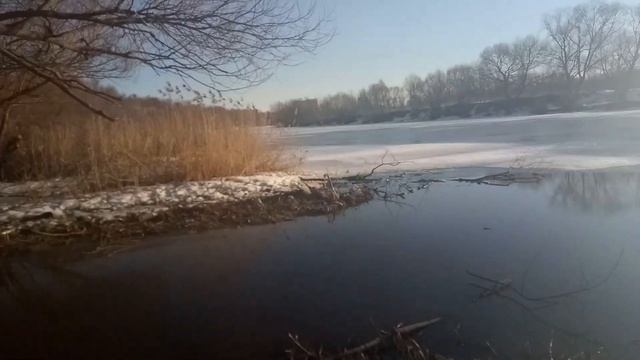 Река Ока зимой. Скоро начнется сезон сплавов по рекам на каяках. Готовим место для сплава.
