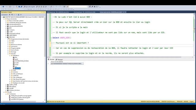 SQL Server cours sécurité : Comment rattacher un user à un login SQL.(exemple simple et concret).