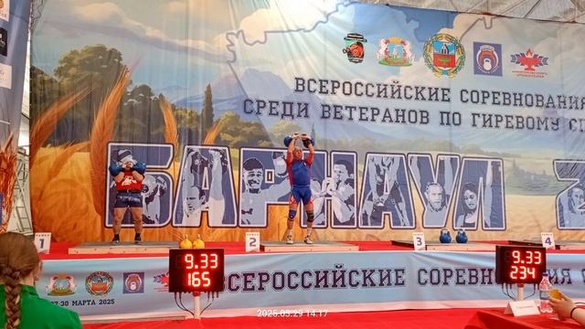 Всероссийское соревнование среди ветеранов мужчин,толчок,старше 70лет, г.Барнаул с 27-30марта2025 г.