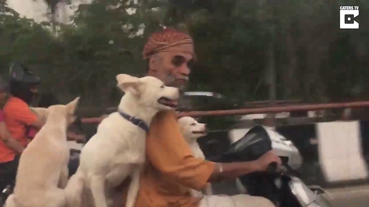Мужчина решил прокатить своих домашних любимцев ) #собаки #скутер #милашки
