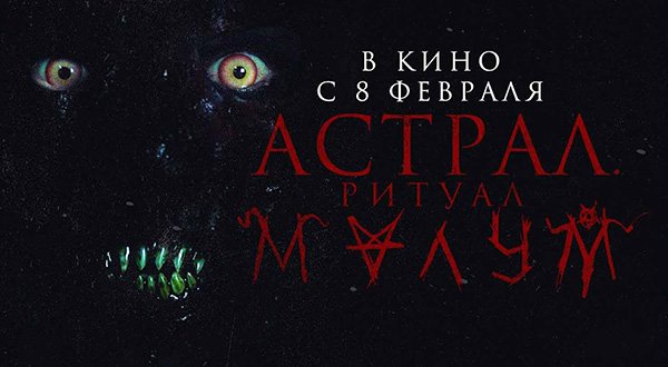 Американский мистический хоррор «Астрал. Ритуал Малум» (Malum ) собрал за первый уик-энд 16,2 млн рублей. Режиссер: Энтони ДиБлази. В ролях: Джессика Сула, Эрик Дж. Олсон, Кэндис Коук и др.