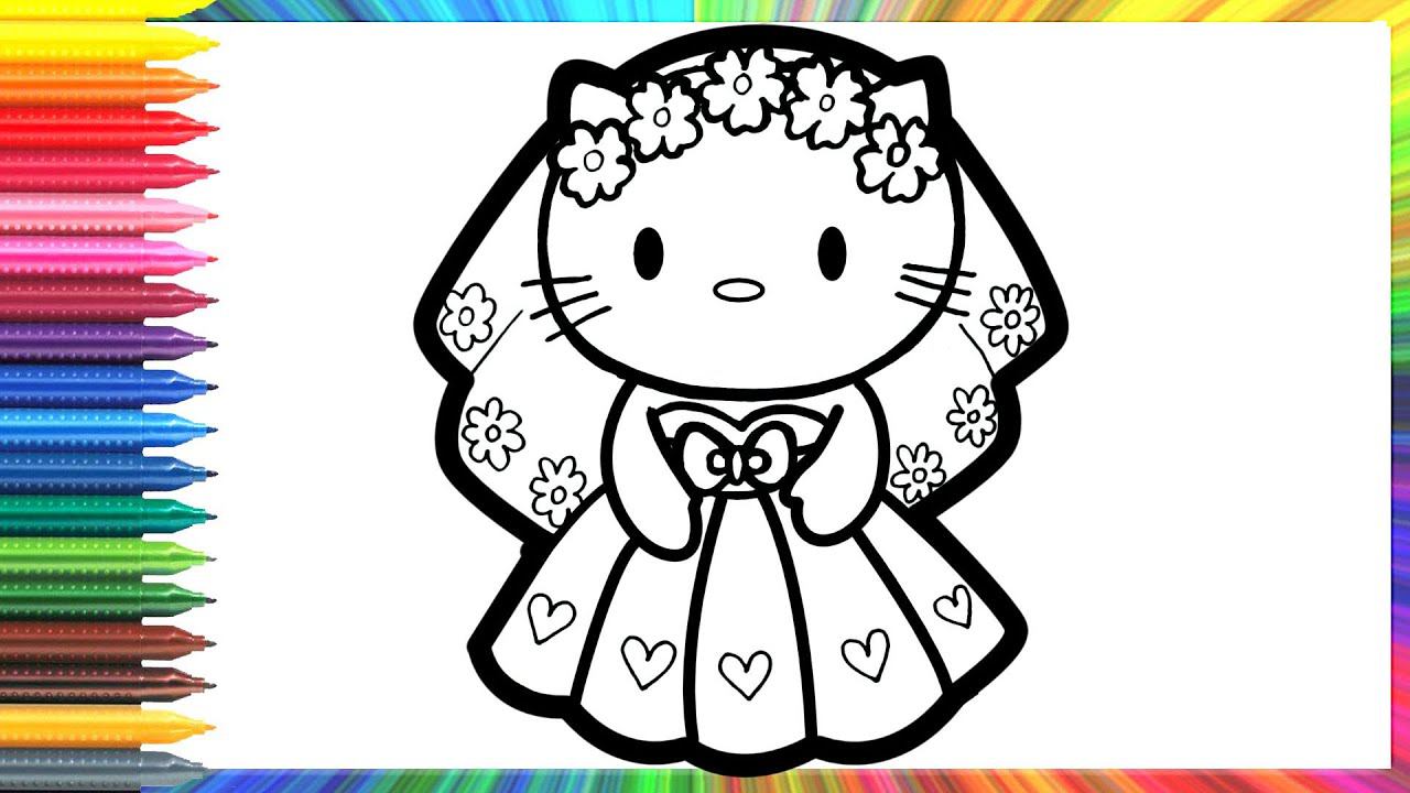 Cara Menggambar Pengantin Hello Kitty untuk anak-anak/How to Draw a Hello Kitty Bride for Children
