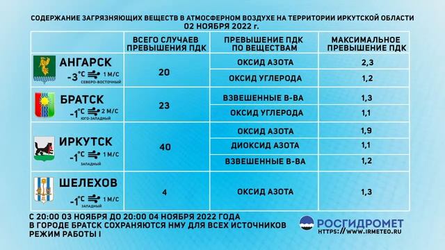 [03.11.2022] Мониторинг состояния атмосферного воздуха 02.11.2022