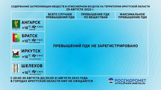 [30.08.2022] Мониторинг состояния атмосферного воздуха 29.08.2022