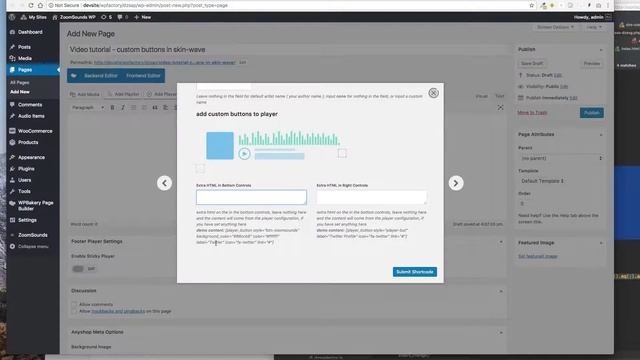 Audio player with Waves, ZoomSounds, codecanyon - add your own custom buttons with custom links