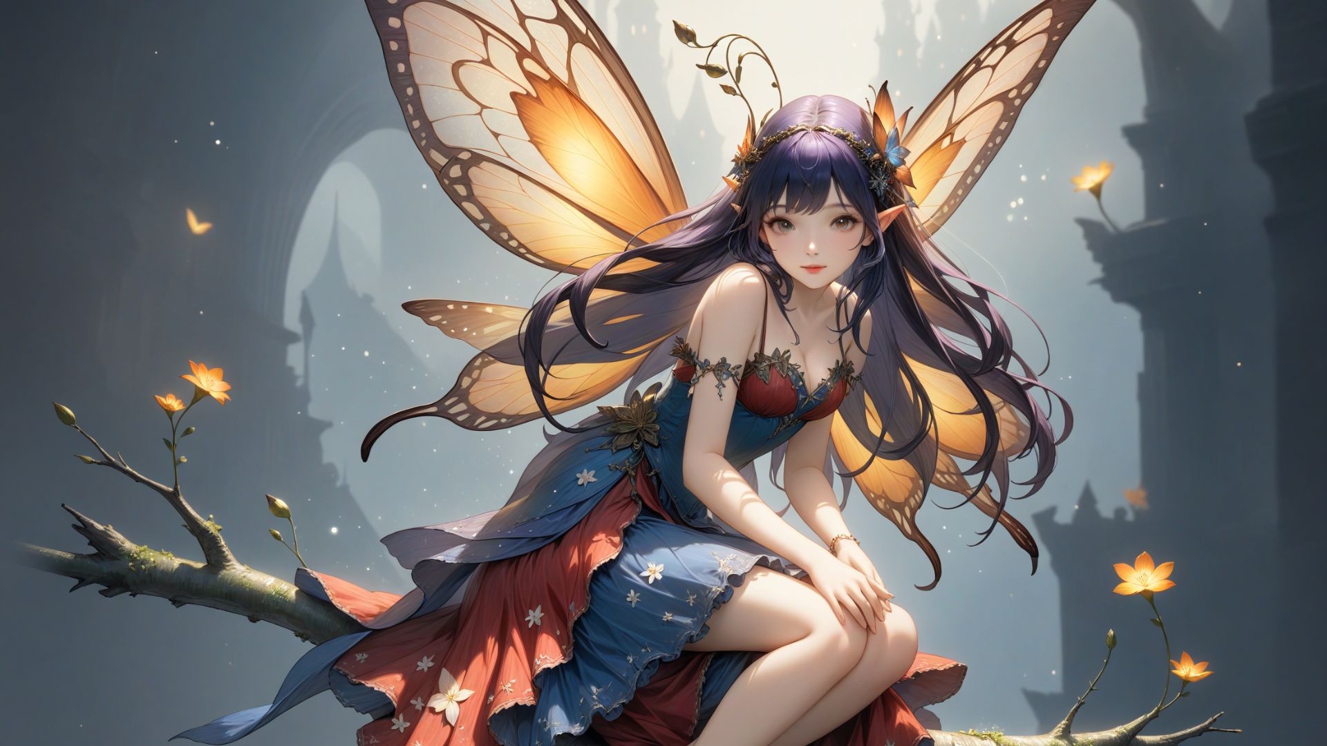 В волшебном лесу фея играет на флейте.