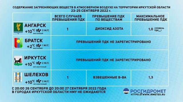 [26.09.2022] Мониторинг состояния атмосферного воздуха 23-25.09.2022