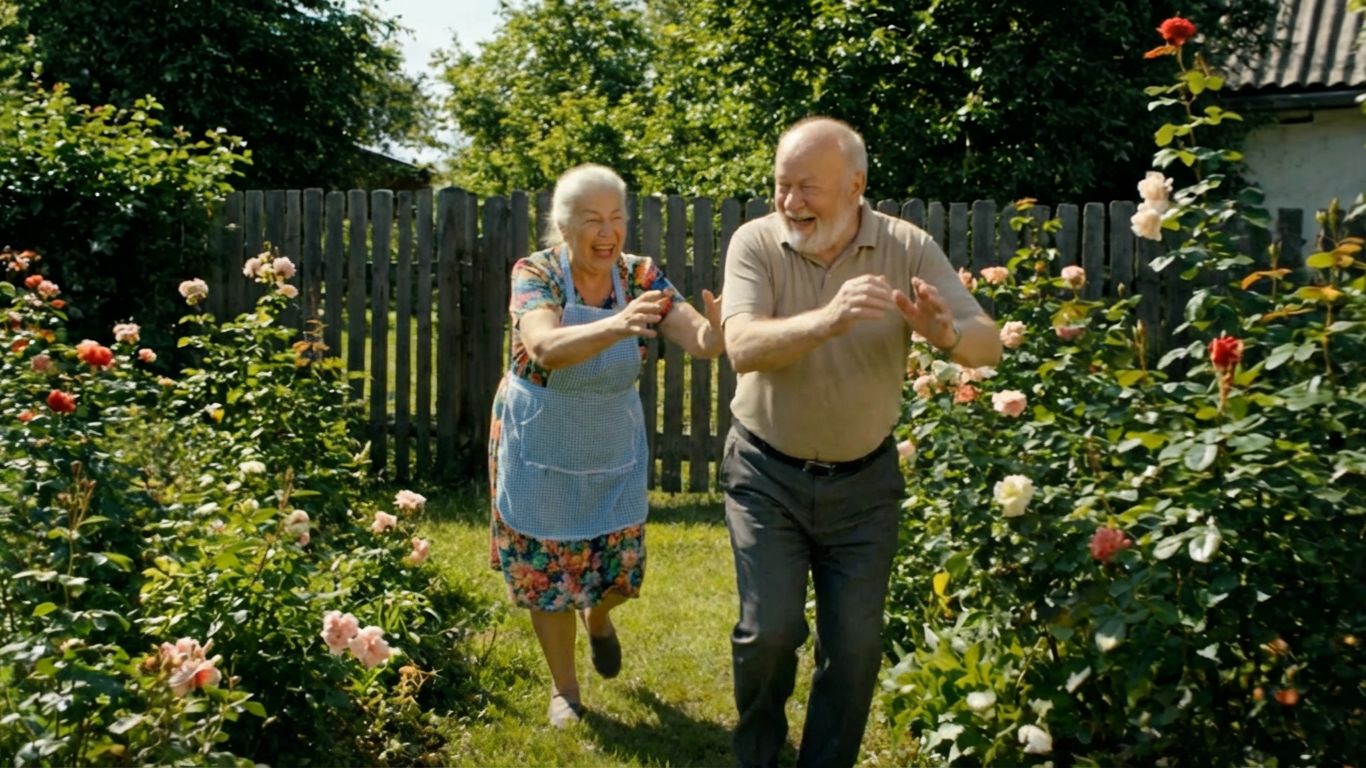 Бабушка бегает за дедом
