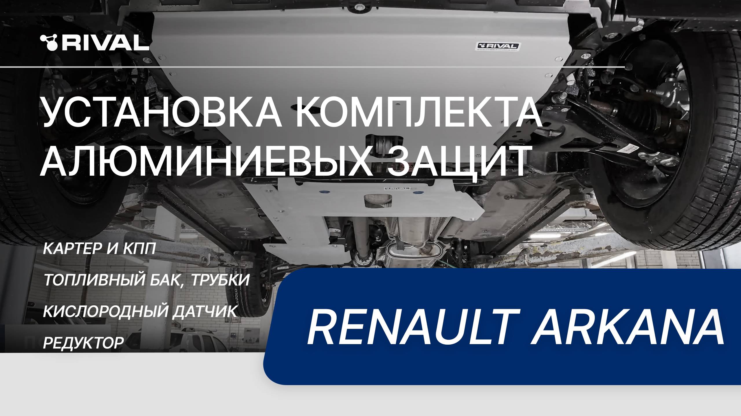 Видеоинструкция по установке комплекта алюминиевых защит на автомобиль Renault Arkana 2019- полный привод Защита картера + КПП + комплект крепежа, RIVAL, Алюминий, Renault Arkana 2019-,1.3T; 1.6 Артикул:333.4736.1 Защита топливных трубок + комплект крепежа, RIVAL, Алюминий, Renault Arkana 2019-, V - 1.3T; 1.6 Артикул:333.4716.1 Защита кислородного датчика + комплект крепежа, RIVAL, Алюминий, Renault Arkana 2019-, V - 1.6; полный привод Артикул: 333.4725.3 Защита топливного бака + комплект крепежа, RIVAL, Алюминий, Renault Arkana 2019-, V - 1.3T; 1.6; полный привод Артикул:333.4718.1 Защита редуктора + комплект крепежа, Rival, Алюминий, Renault Arkana 2019-, V-1.3; 1.6 полный привод Артикул: 333.4737.1