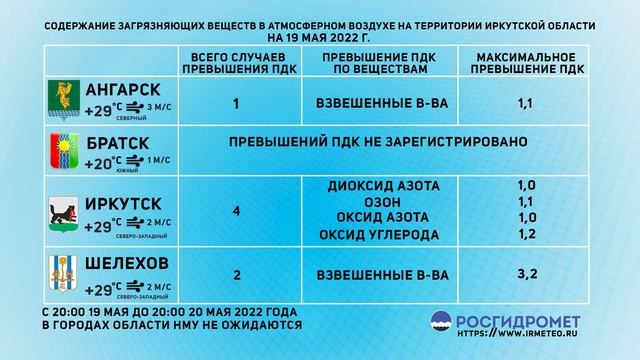 [20.05.2022] Мониторинг состояния атмосферного воздуха за 20.05.2022