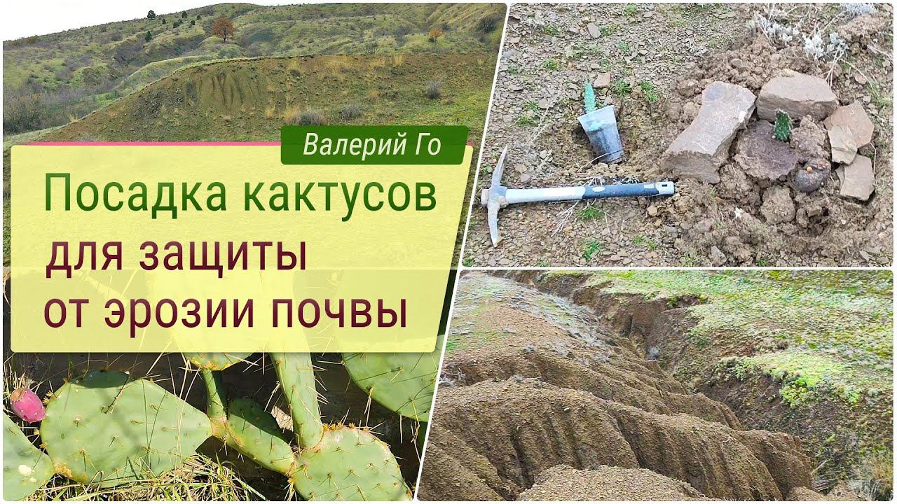 Посадка кактусов для защиты от эрозии почвы!