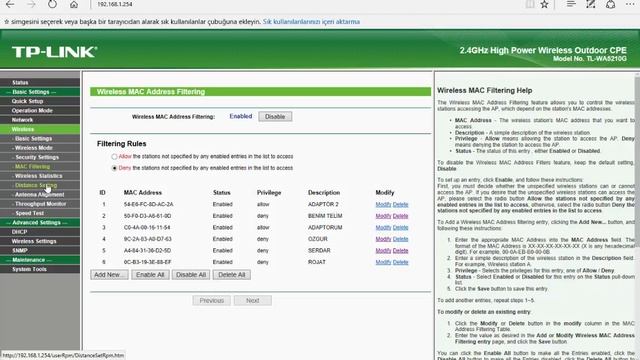 Tp-link wa5210g mac filtreleme nasıl yapılır