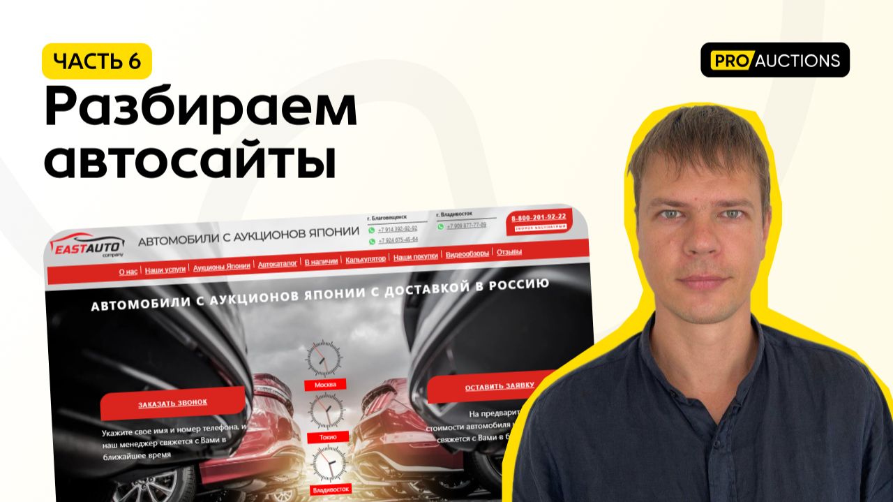 В этом видео разбираем сайт EastAuto - пишите в комментариях, как вам разбор и на какие сайты сделать еще. Если вы хотите, чтобы мы разобрали ваш автосайт, присылайте ссылку на него в комментариях🙌🏻 Мы в других соц.сетях: Телеграм: https://t.me/proauctions Инстаграм: https://www.instagram.com/proauc/ Для сотрудничества пишите нам в сообщения в Телеграм или по номеру +7 (950) 294-00-41 на WhatsApp #разборы #анализсайта #импортавто #вебразработка #созданиесайтов