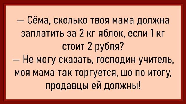 Как мужики в баньке развлекались! Сборник свежих анекдотов! Юмор! 00:00 Забавные ситуации на свадьбе и экзамене • Соня после свадьбы застал свою жену с матерью-тройняшкой. • Абитуриент на экзамене в театральное училище спрашивает, как показать слоника. 00:28 Разделение обязанностей в семье • Муж перечисляет обязанности жены: готовит, моет, стирает, гладит, прибирает, ходит на работу, учит с детьми уроки. • Жена постоянно засыпает. 00:47 Утренний разговор и развод • Петрович рано пришёл на работу, потому что жена не поставила чайник. • Он решил развестись, так как нашёл другую. 01:09 Проблемы с объяснением теоремы • Учитель трижды объясняет теорему, но ученики не понимают. 01:25 Новый русский вокруг больницы • Новый русский кричит «я хожу», другой спрашивает, вылечили ли его. 01:40 Шуточное анкетирование в фирме • В фирме проводилось анкетирование, 90% сотрудников назвали одного из мужчин самым желанным. 02:02 Выбор между двумя кандидатурами • Абгам не может выбрать между двумя девушками с разными днями рождения. 02:16 Девочка в песочнице • Девочка в новом платье быстро ест, тётя спрашивает, что она ест. 03:01 Тост и суп • Тост за то, чтобы стать нормальным мужчиной. • Вопрос о супе, который может испортиться. 03:11 Советы матери перед свадьбой • Мать даёт дочери советы, как вести себя с мужем. 03:31 Пересдача экзамена по математике • Студент пересдаёт высшую математику, преподаватель в отчаянии. 04:29 Звонок в полицию • Девушка звонит в полицию, кто-то ломится в дверь, ей объясняют, как использовать ружьё. 05:54 Пьяный медведь • Медведь радуется, что Маша вышла замуж. 06:15 Артрит и газета • Пьяный мужик спрашивает священника об артрите, ссылаясь на газету. 06:47 Объявление на заборе • Объявление о съёмной квартире с 14:22 Пешеходы и транспортный налог • Обсуждение того, являются ли пешеходы участниками дорожного движения. • Упоминание о транспортном налоге и его отсутствии у пешеходов. 14:34 Роль детей в семье • Сравнение детей с бандитами и организованными группировками. • Неопределённая роль мамы в семье. 14:52 Плохая новость от доктора • Доктор сообщает пациенту, что его будет лечить практикант. 15:08 Условия для дискотеки • Мать разрешает дочери пойти на дискотеку, но с условием вернуться домой через три дня. 15:22 Поиск невесты • Совет старого еврея Фимы не откладывать поиски невесты. 15:33 Кот и ужин • Кот всегда приходит на ужин, хотя его не приглашали. 15:44 Очередь и банкомат • Мужчина просит пропустить его к банкомату. 15:53 Покупка спортивного костюма • Мужчина не знает размер одежды для жены и обращается к продавщице. 16:20 Креативный отдел • Обсуждение работы в креативном отделе и парковки на слове «шанс». 16:39 Символика дракона • Дракон символизирует лень. 17:01 Обида на заводе • Петрович объясняет, что такое обида на заводе. 17:17 Арбуз на остановке • Мужчина угощает арбузом девушек на остановке. 17:36 Жалоба подруги • Женщина жалуется подруге на бывшего партнёра. 17:45 Вопрос о яблоках • Сема не может ответить на вопрос о стоимости яблок из-за торга матери. 18:00 Последнее желание • Рыбак просит золотую рыбку сделать что-то доброе для юноши. 18:23 Разделение картошки • Вопрос о разделении четырёх картошек на пятерых. 18:41 Настройка фортепиано • Муж просит настроить фортепиано, но работник целует его жену. 18:52 Приглашение на пиво • Штирлиц 28:08 Экзамен в сельскохозяйственном • Ди