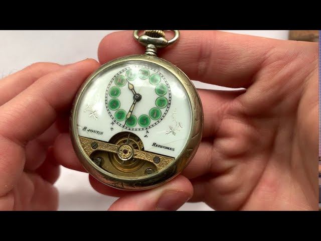 Видеообзор на старинные швейцарские карманные восьмидневные часы Hebdomas с открытым балансом