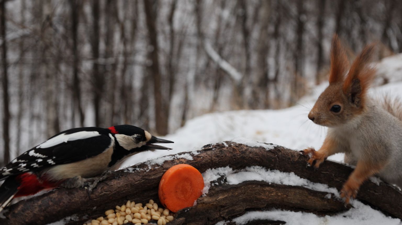 Дятел и белки. Небольшая зарисовка