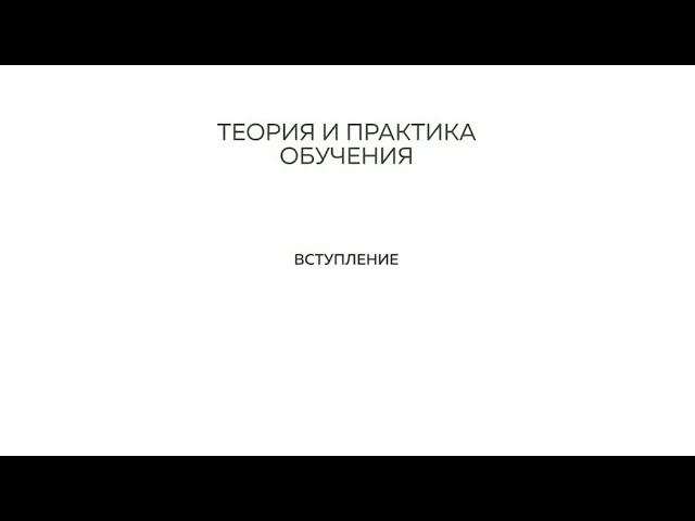 Теоретические основы обучения (Введение)