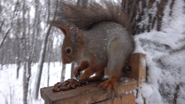 Одинокая голодная белка. И ветер