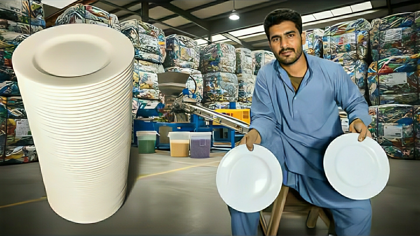 Невероятный процесс переработки пластикового лома для изготовления новых пластиковых тарелок. Индия