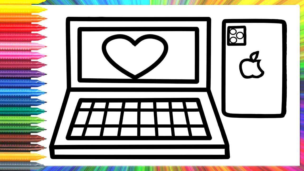 Glitter Laptop & Iphone Drawing and Coloring | Vẽ và tô màu máy tính điện thoại