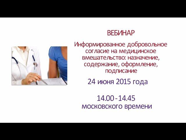 Вебинар "Информированное добровольное согласие на медицинское вмешательство"