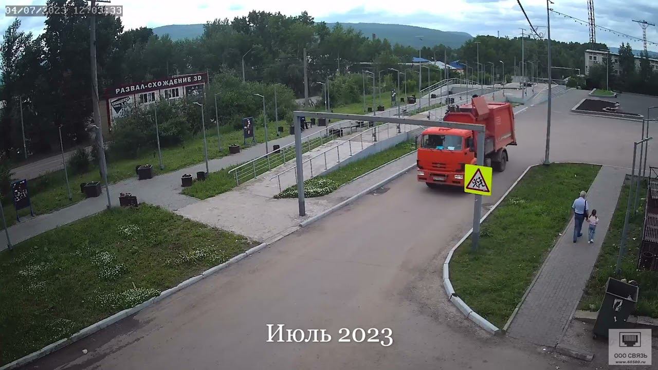Водитель мусоровоза снес рекламную конструкцию