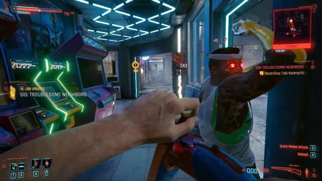 Gig Troublesome Neighbors Cyberpunk 2077 Taki Kenmochi video. This video shows how to complete Gig Troublesome Neighbors quest in Cyberpunk 2077 game. Here you can see Gig Troublesome Neighbors mission walkthrough gameplay of Cyberpunk 2077 and all the related locations. 00:00 Approach the pachinko mashines 00:58 Locate Taki Kenmochi 01:11 Neutralize Taki Kenmochi 01:23 Pick up Taki Kenmochi and leave the area 01:36 Carry Taki Kenmochi to the fixer's transport Cyberpunk 2077 is a 2020 action role-playing video game developed and published by CD Projekt and available on PlayStation 5, Stadia, Windows, Xbox Series X/S. No bugs so far for me. #Cyberpunk2077