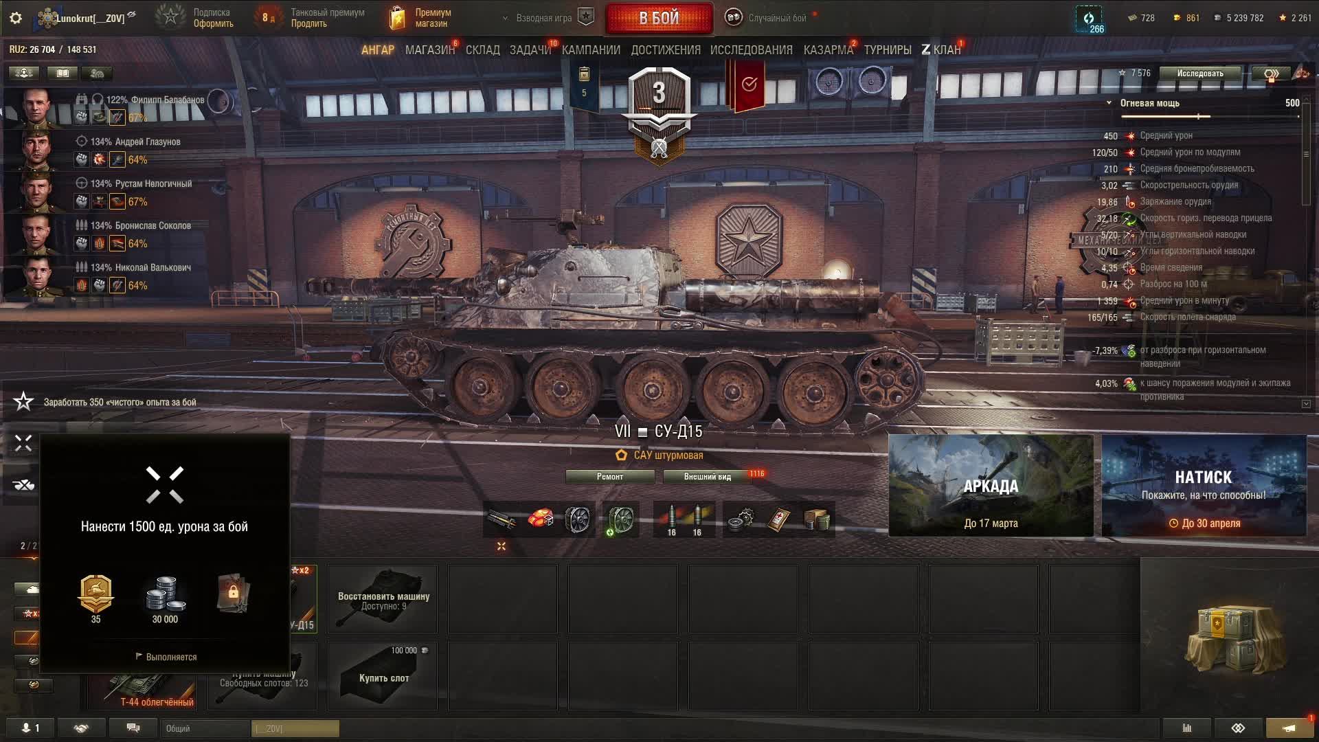 Мир танков - Прокачка Штурм-сау СУ-Д15 и техника сборной нации)